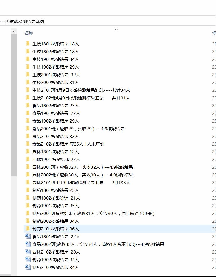 学生工作组、信息统计组逐人列出清单,第一时间统计出952名学生、57名职工的所在地及近期行程,掌握师生的当前状态,做到“人数清、状态明”。安排专人每日定时报送师生员工健康台账、隔离台账、体温监测、全员核酸参与情况等数据,做到准确无误。在跨校区管理人手不够的情况下,3名青年教师主动请缨,奔赴在一线承担起北新街校区264名2021级学生的管理服务工作,两校区联动按照“采样前逐人签到”“采样后收缴报告”双向并行方式确保学生核酸检测不漏一人。