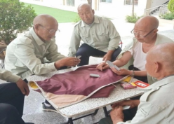 活动伊始,队员们精神饱满,井然有序地向光荣院前行。到达目的地后,身着军装的老人们进入志愿者们的视线,他们围成一团,下象棋、打牌、聊天。老人们在看到志愿者们之后,纷纷热情地招待大家。在护工的带领下,志愿者们来到了老人们的房间,主动帮助老人收拾房间、打扫卫生。