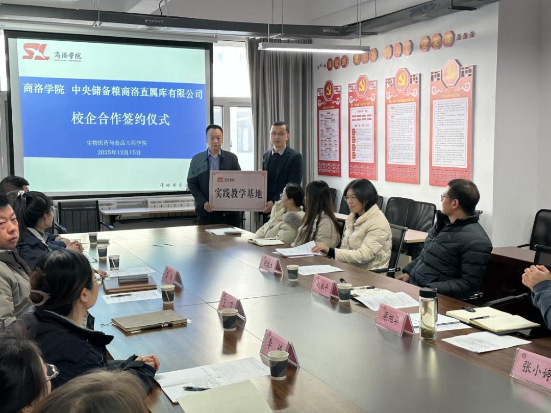 12月15日,生物学院与中央储备粮商洛直属库有限公司共建实践教学与劳动教育实践基地授牌仪式在商洛学院举行。商洛学院生物医药与食品工程学院院长赵永平、副院长梁旭华,中央储备粮商洛直属库有限公司总经理王卫、副总经理姜昕、李婷,商洛市粮油质量检验所实验室负责人张小婷出席会议。生物学院粮食工程专业教师代表和中央储备粮商洛直属库有限公司相关科室员工参加会议。