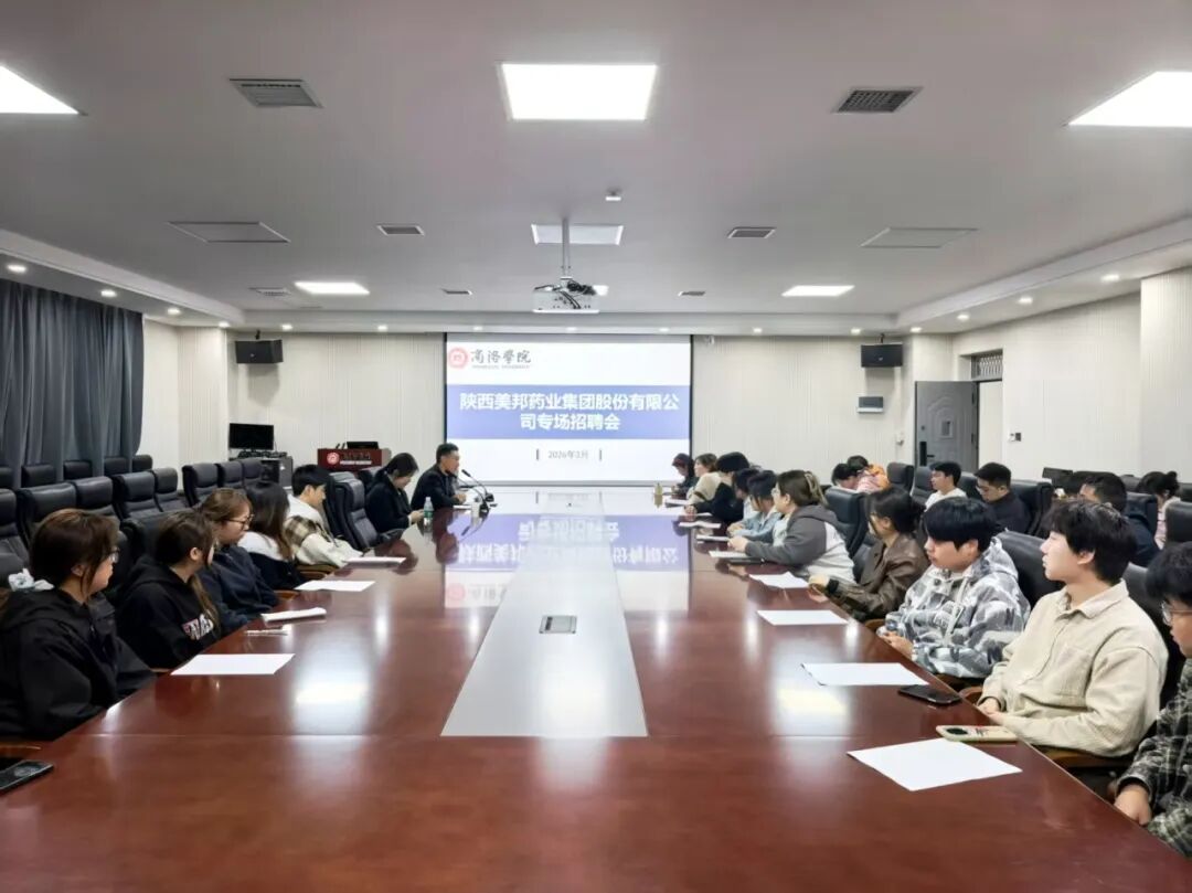 3月27日下午,陕西美邦药业集团股份有限公司专场招聘会在丹江校区顺利举行。本次招聘会吸引了生物学院、化材学院、电信学院共50余名应届毕业生前来参加。招聘会由化材学院辅导员田莎莎主持。
