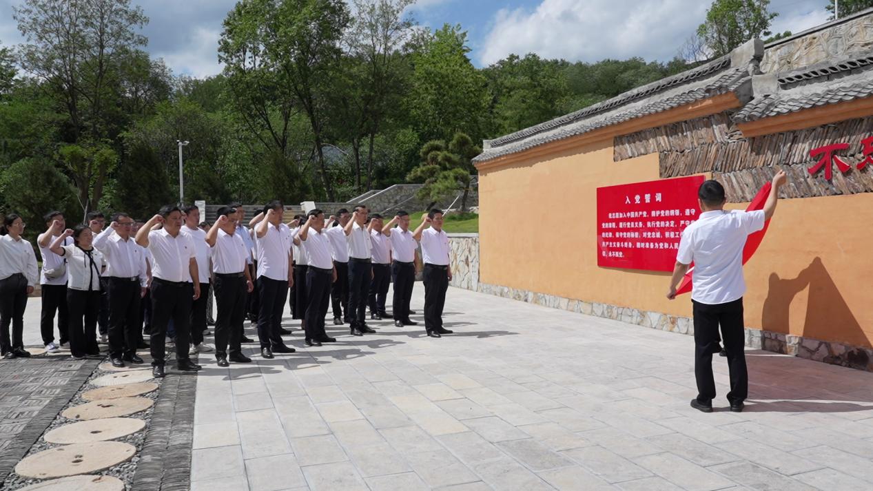 在唐澍烈士红色教育基地,全体党员在烈士墓碑前默哀致敬,深情表达对革命先辈英烈的深切缅怀和追思敬仰。党员们参观了唐澍主题馆,通过观看展板和实物展示,深入了解了唐澍投身革命的英勇事迹和红二十五军九泉山激战等洛南红色革命历史大事件。在大事记广场,全体党员面向党旗庄严宣誓,表达不忘初心,牢记使命的坚定决心。